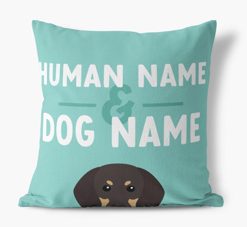 Human And Pet Name: Personalized Black and Tan Coonhound Canvas Pillow