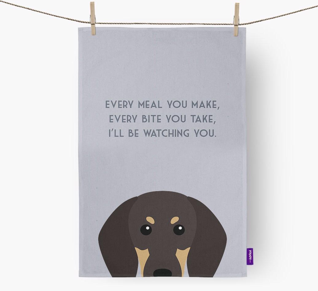 'I'll Be Watching You' - Personalized Black and Tan Coonhound Dish Towel