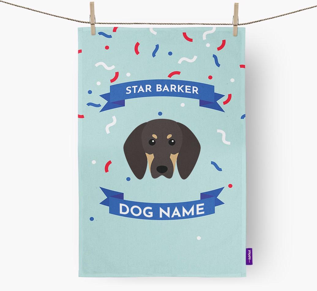 'Star Barker' - Personalized Black and Tan Coonhound Tea Towel