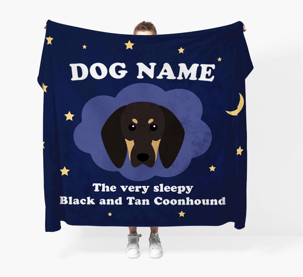 'The Very Sleepy...' - Personalized Black and Tan Coonhound Throw Blanket