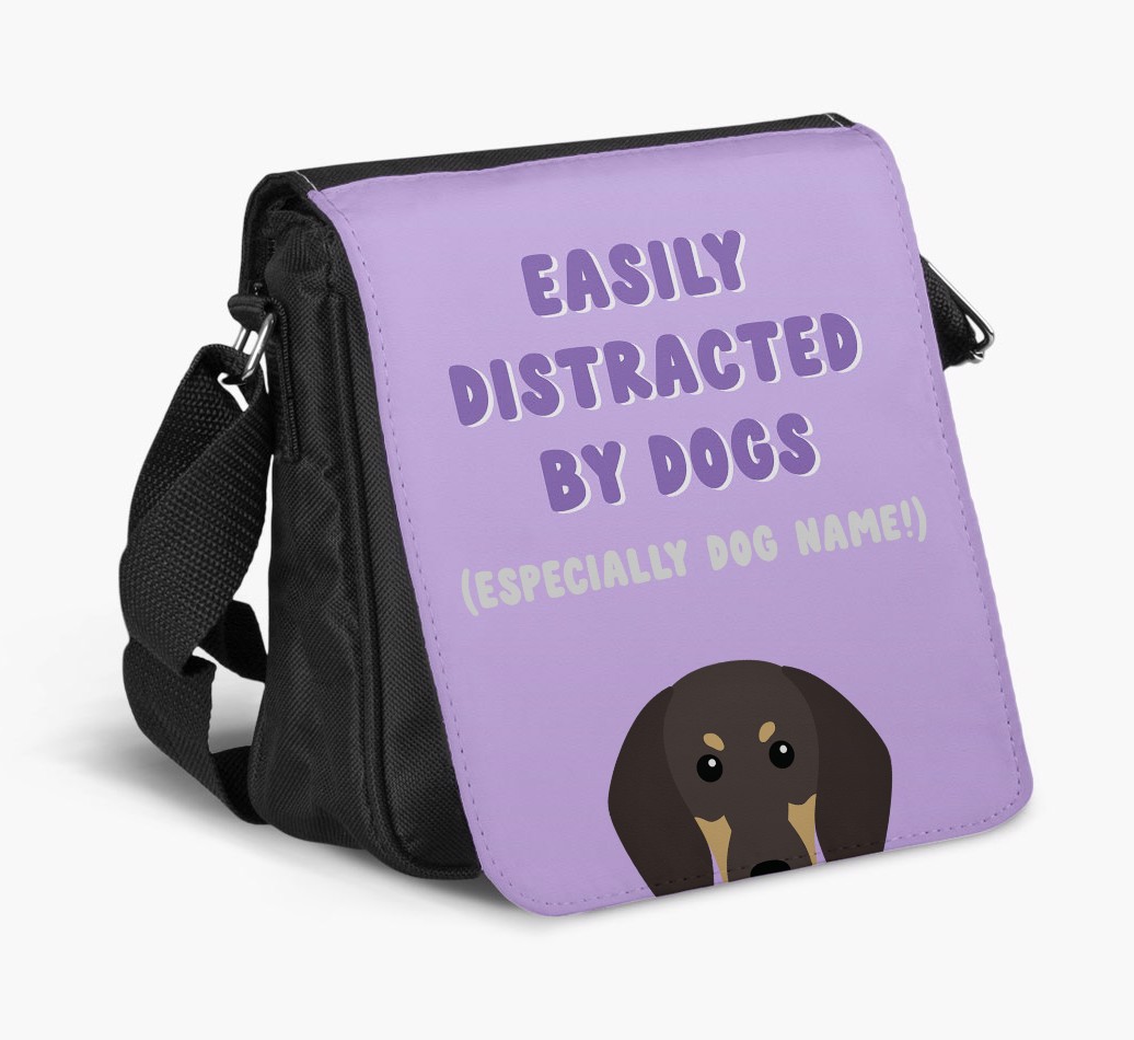 Shoulder Bag 'Easily Distracted by Dogs' with Black and Tan Coonhound Silhouette