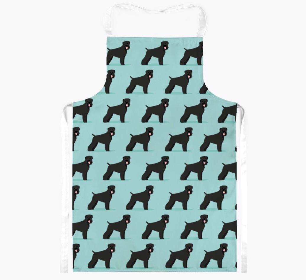 Personalized with row-upon-row of adorable Black Russian Terrier icons, this adorable apron is sure to make you smile while you're cooking up a storm.