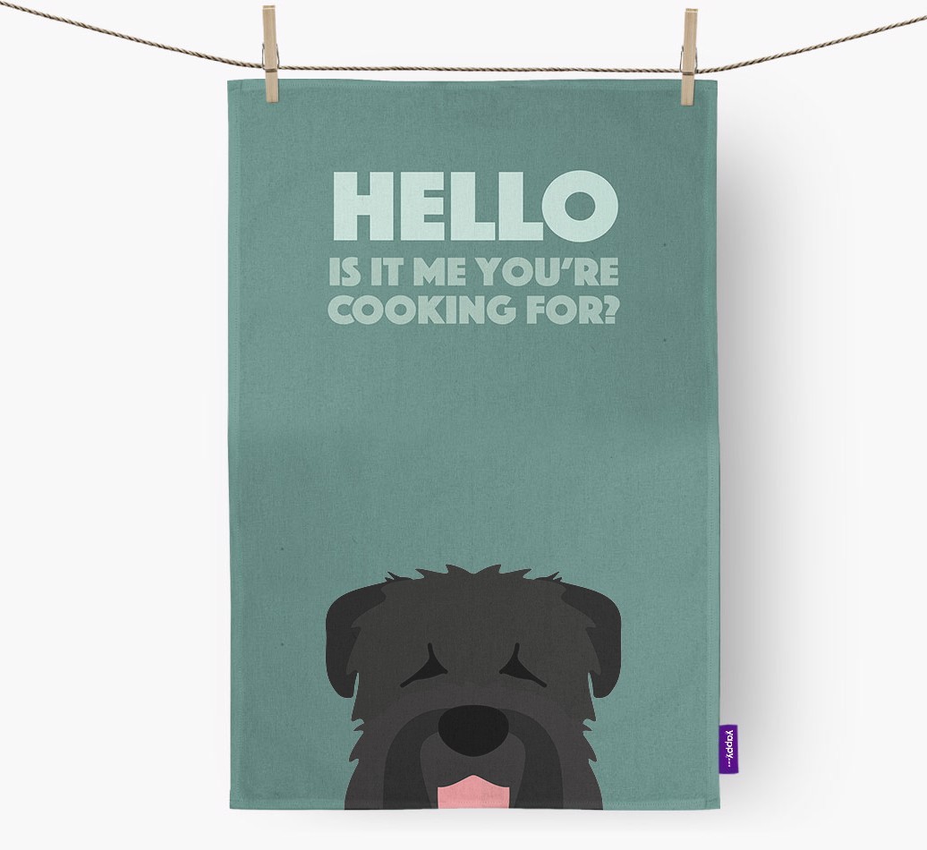 This gorgeous dish towel is sure to delight every Black Russian pawrent, especially as it stars their pup asking their favorite question, 'is it me you're cooking for?'