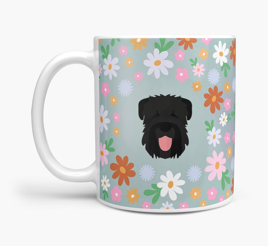 Featuring a colorful bunch of flowers, this mug is printed with the words 'woofly grandma' on one side of the mug and your Black Russian's cute icon on the other. Bloomin' lovely!