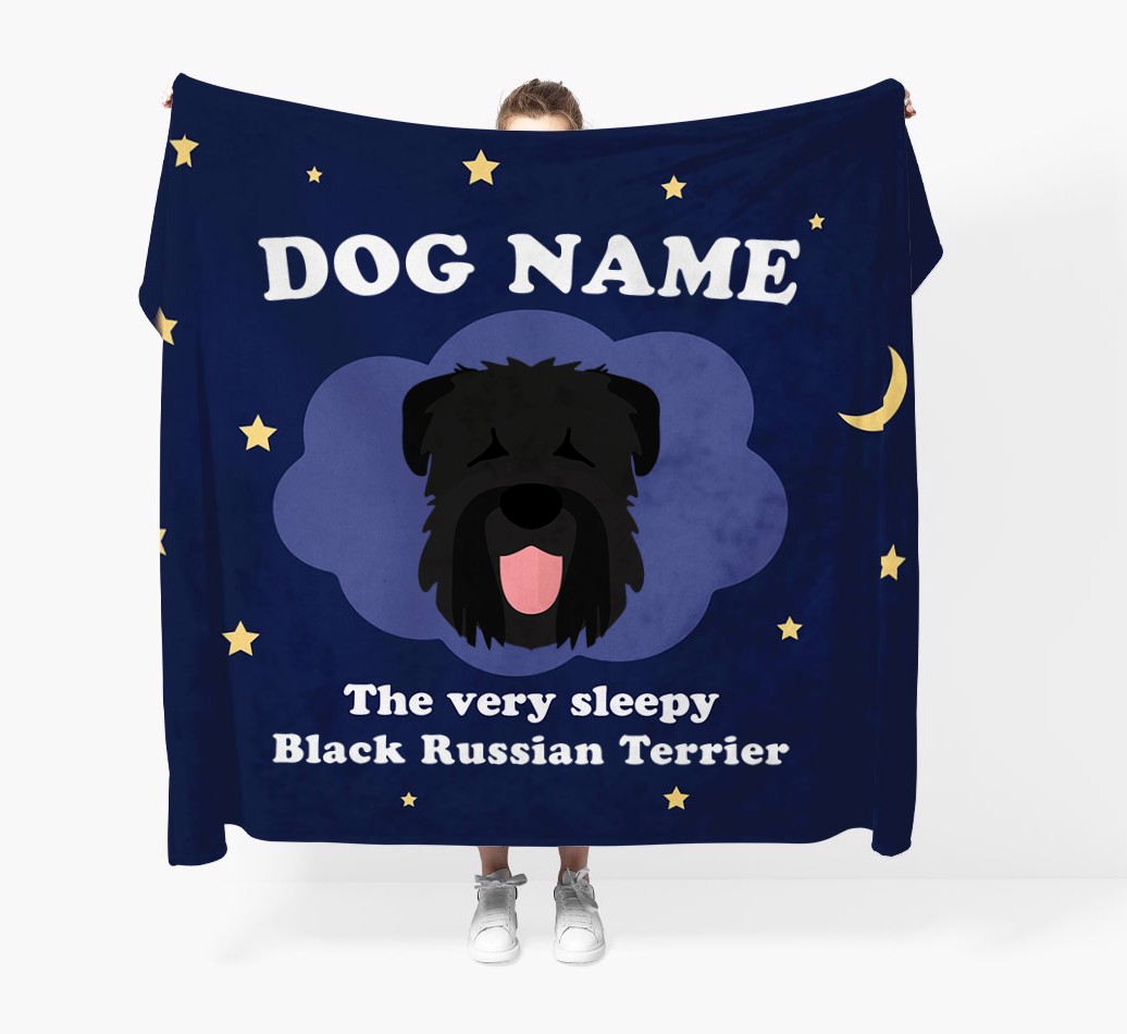 'The Very Sleepy...' - Personalized Black Russian Terrier Throw Blanket