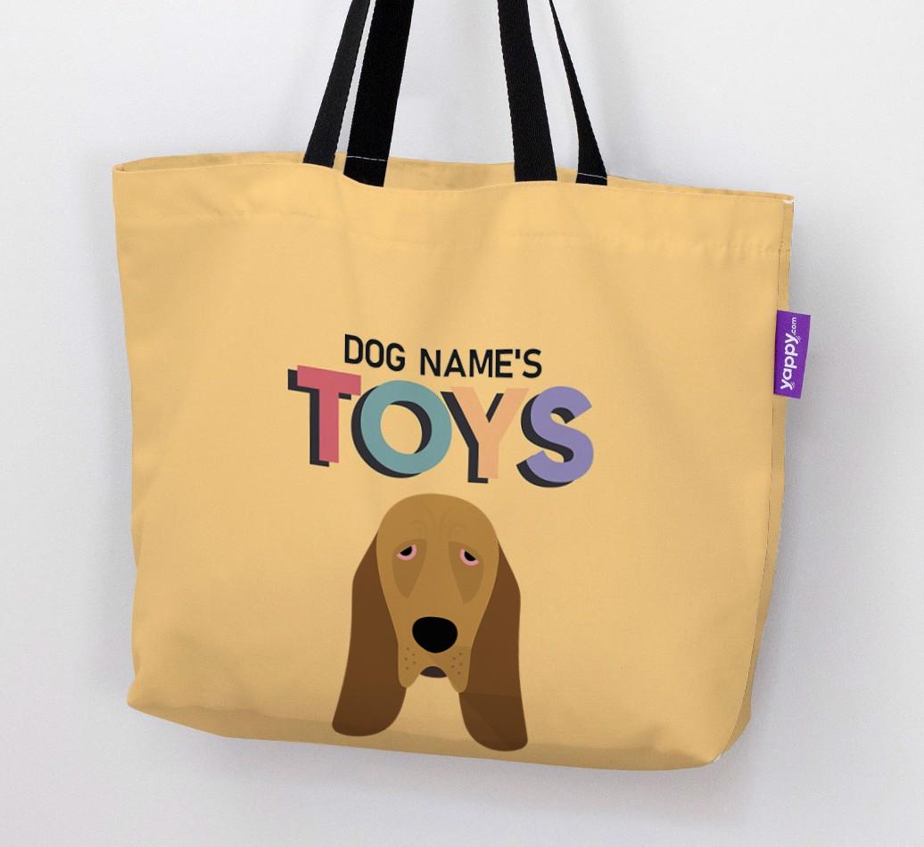 Don’t worry, we’ve got you covered with this pawsonalized canvas bag made for your Bloodhound’s toy collection!