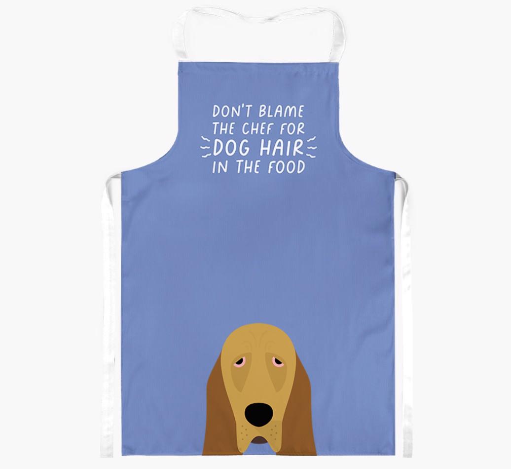 If you’re getting tired of people coming round and moaning about Bloodhound hair in the food, you’re going to need this apron to remind them that you cannot be blamed, it’s Bloodhound’s fault!