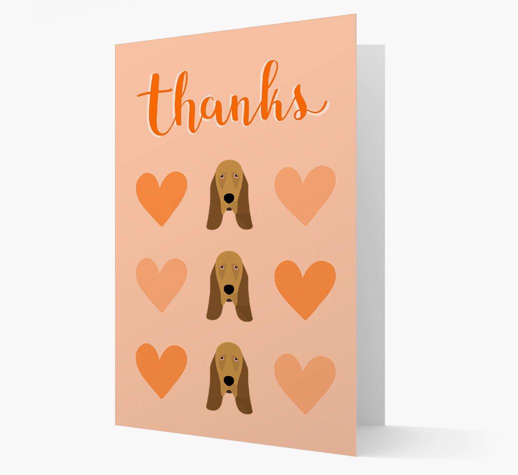 'Thanks' - Personalized Bloodhound Card with Heart Pattern