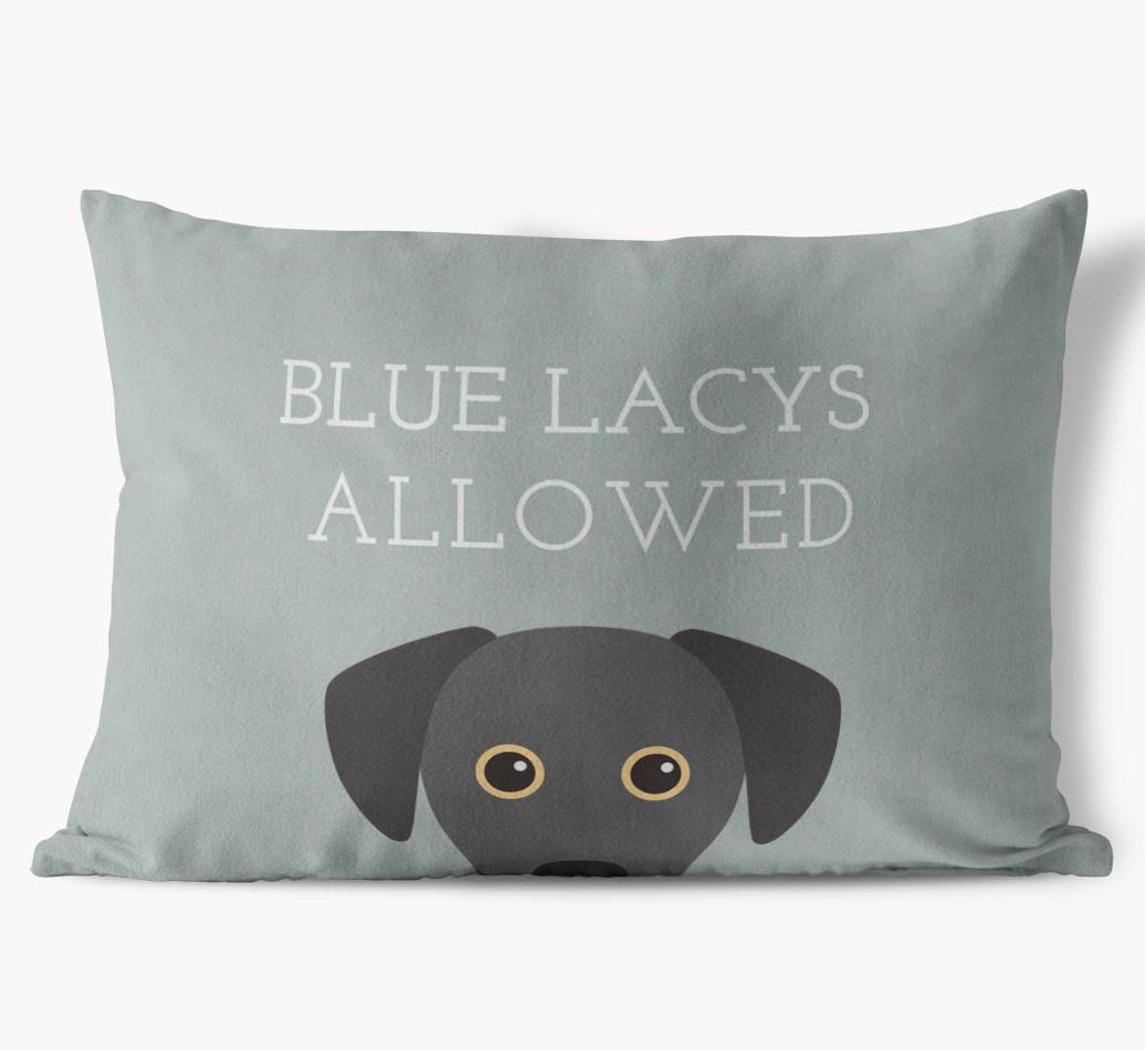 This exclusive, luxurious pillow is printed with the words ‘Blue Lacys Allowed’, which I’m sure Your Blue Lacy would definitely approve of.