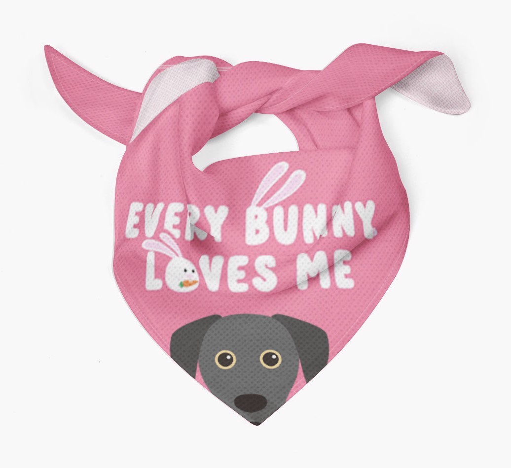 Tailored with the fabulous saying: 'Every Bunny Loves Me', this bandana is the perfect addition to your Blue Lacy's wardrobe! Available in four egg-ceptional colors and personalized with your Blue Lacy's icon, this is the perfect pawchase for Easter!