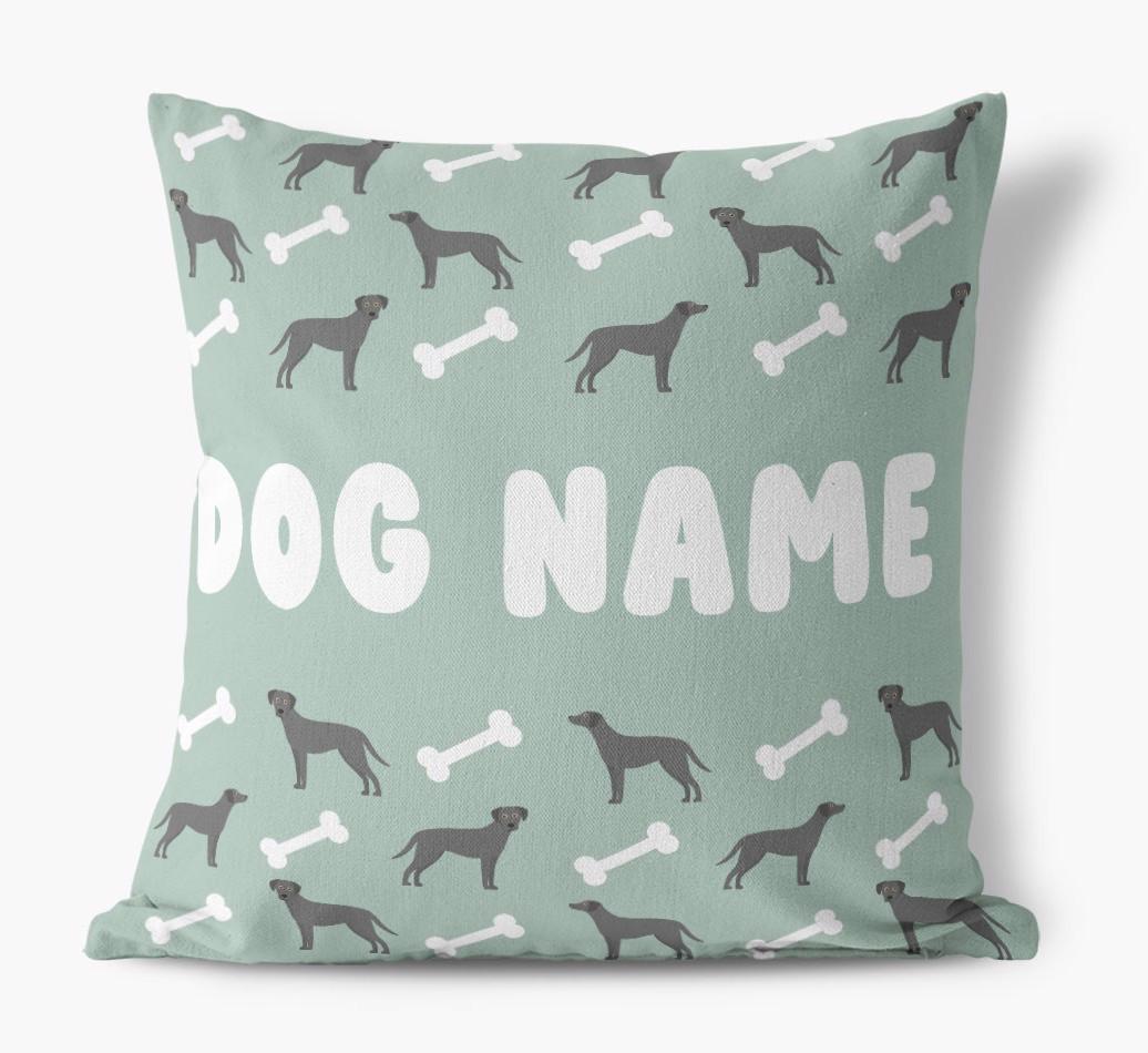 Personalized with Blue Lacy’s name against a background of Lacy Dog icons and bones, this gorgeous pillow is full of pawsonality.