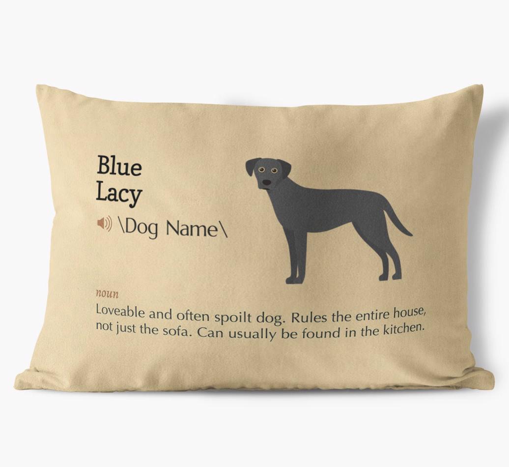 Personalized just for Your Blue Lacy and featuring a unique Blue Lacy definition and silhouette, this pillow truly is like no other.
