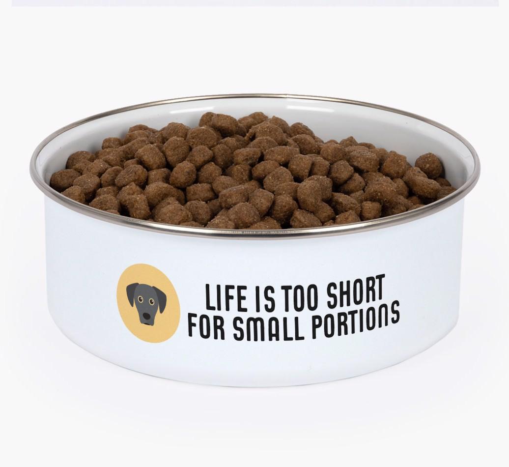 If Blue Lacy is a pup with a big appetite, we've got just the food bowl for them! Printed with the phrase, "life is too short for small portions", you'll fur-ever be reminded to give your furry friend an extra helping.