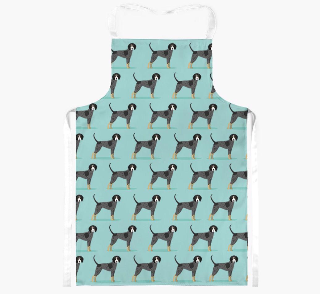 Personalized with row-upon-row of adorable Bluetick Coonhound icons, this adorable apron is sure to make you smile while you're cooking up a storm.