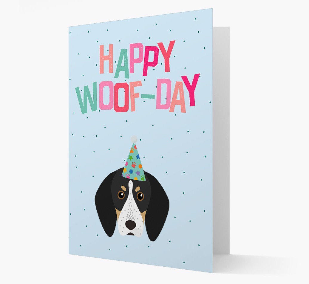 'Happy Woofday' - Personalized Bluetick Coonhound Birthday Card