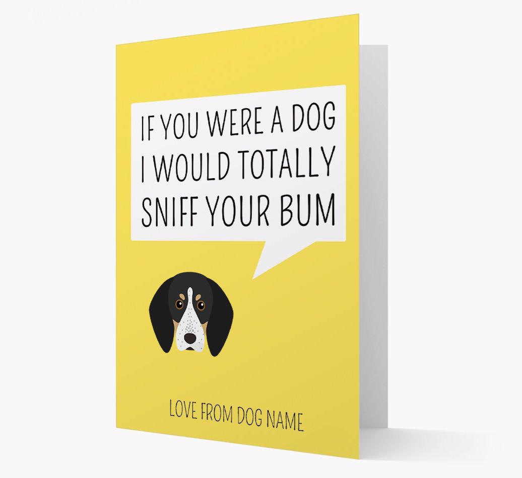 Does Your Bluetick Coonhound have a hooman friend that they just adore? Then why not let this special pawson know with our ‘Sniff Your Butt’ card.