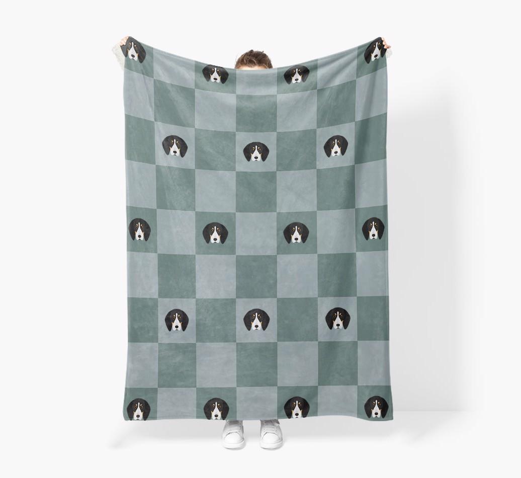 'Checkboard' - Personalized Bluetick Coonhound Blanket: Premium Sherpa Fleece