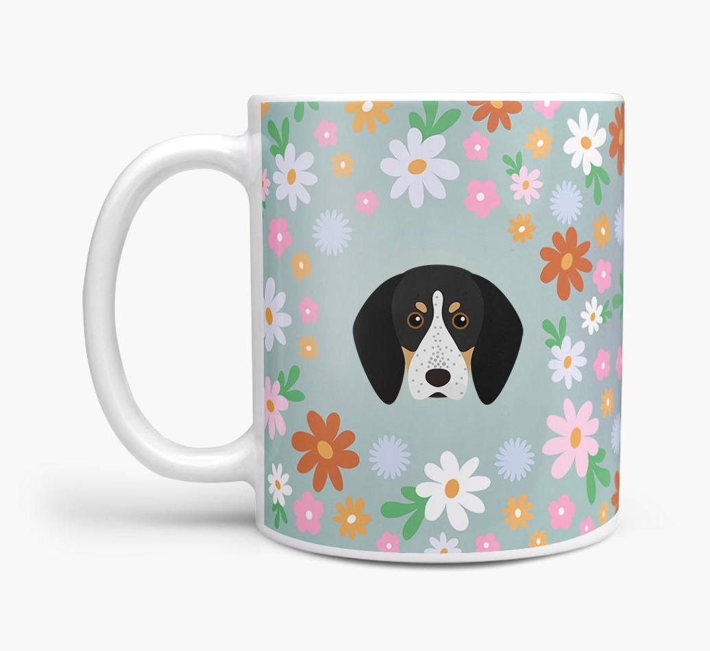 Featuring a colorful bunch of flowers, this mug is printed with the words 'woofly grandma' on one side of the mug and your Coonhound's cute icon on the other. Bloomin' lovely!