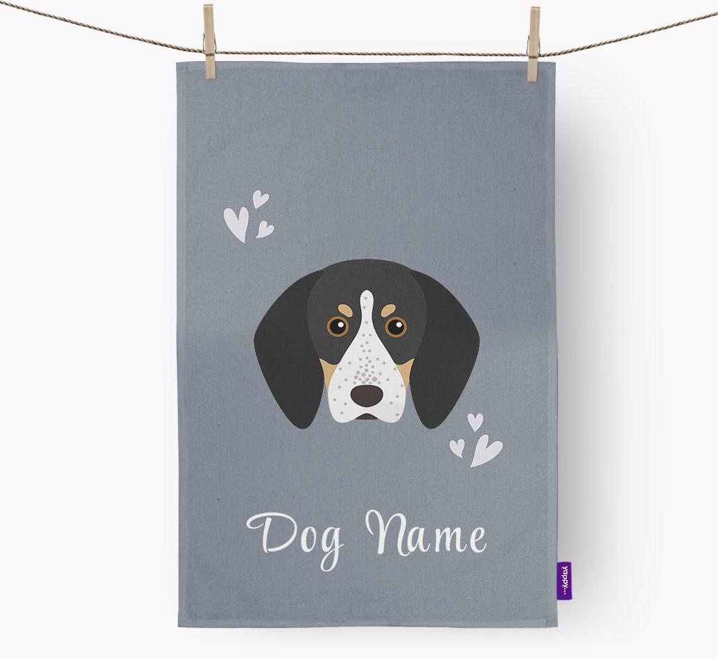 'Hearts' - Personalized Bluetick Coonhound Dish Towel