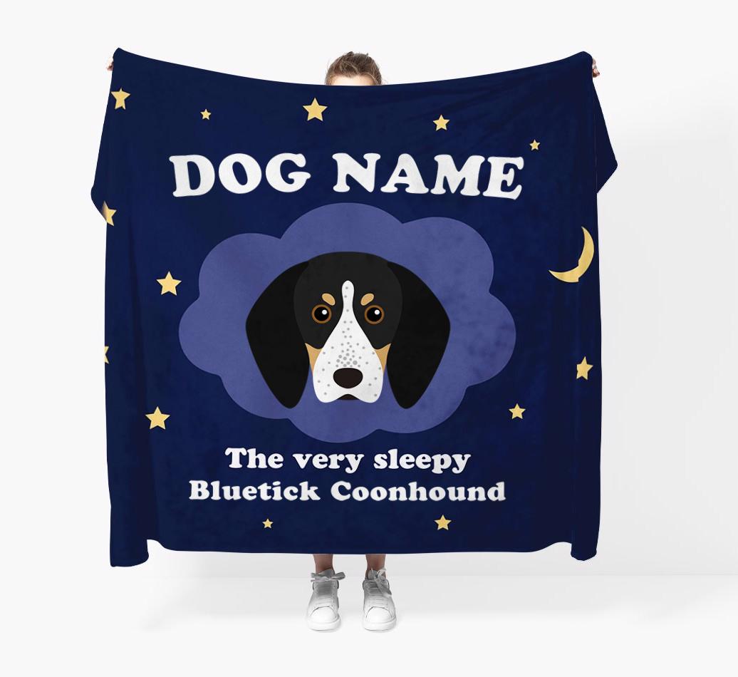 'The Very Sleepy...' - Personalized Bluetick Coonhound Throw Blanket