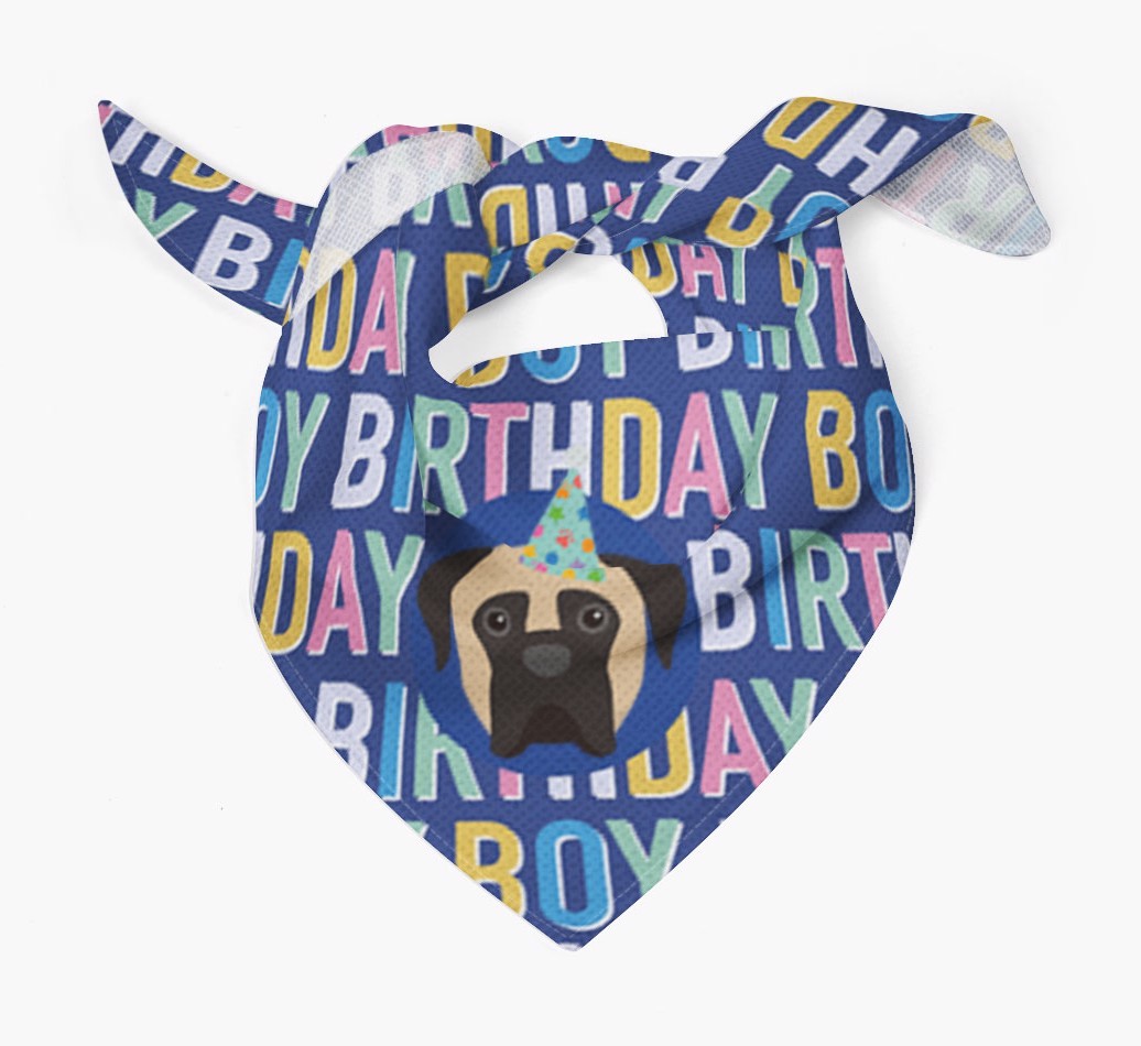 Featuring a colorful text pattern that reads 'birthay boy' and personalized with Boerboel's cute icon (complete with a fun party hat), your Boerboel will look simply pawgeous on their special day when they're wearing this bandana.
