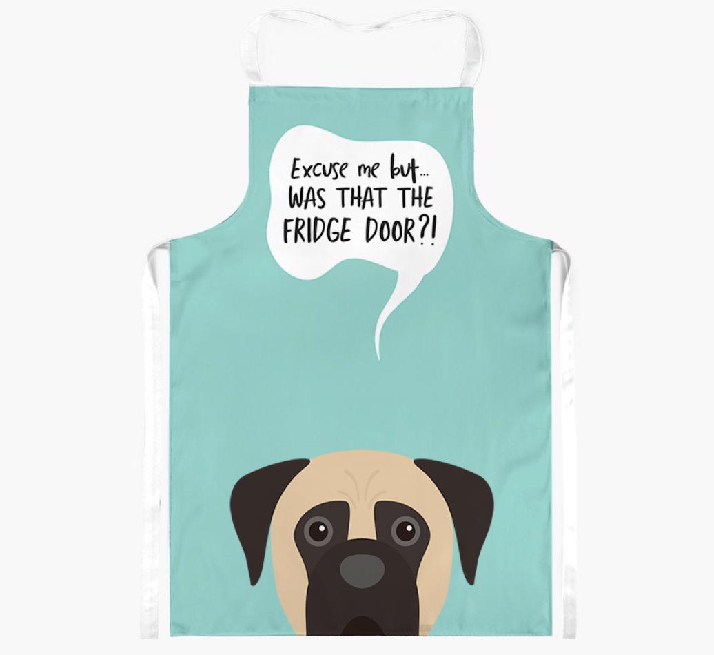 Featuring your hungry hound's cheeky icon and available in five eye-catching colors, this apron is a must-have for parents of greedy pups!