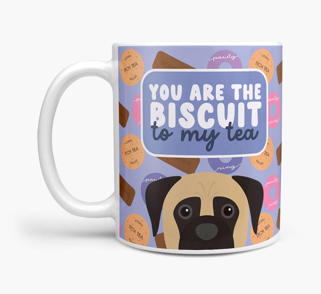 Featuring a cute biscuit motif paired with your Boerboel's adorable face, this mug is bound to be a firm favorite in every household.