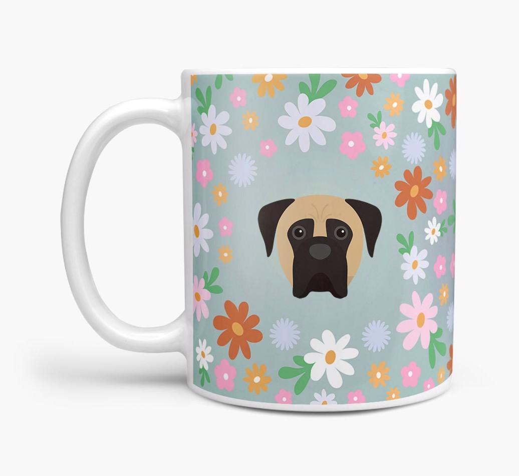 Featuring a colorful bunch of flowers, this mug is printed with the words 'woofly grandma' on one side of the mug and your Boerboel's cute icon on the other. Bloomin' lovely!