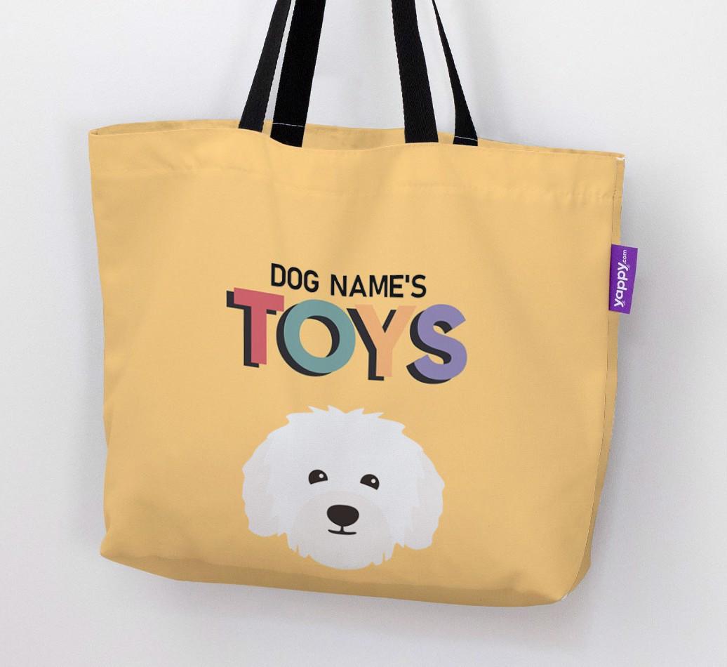 Don’t worry, we’ve got you covered with this pawsonalized canvas bag made for your Bolognese’s toy collection!