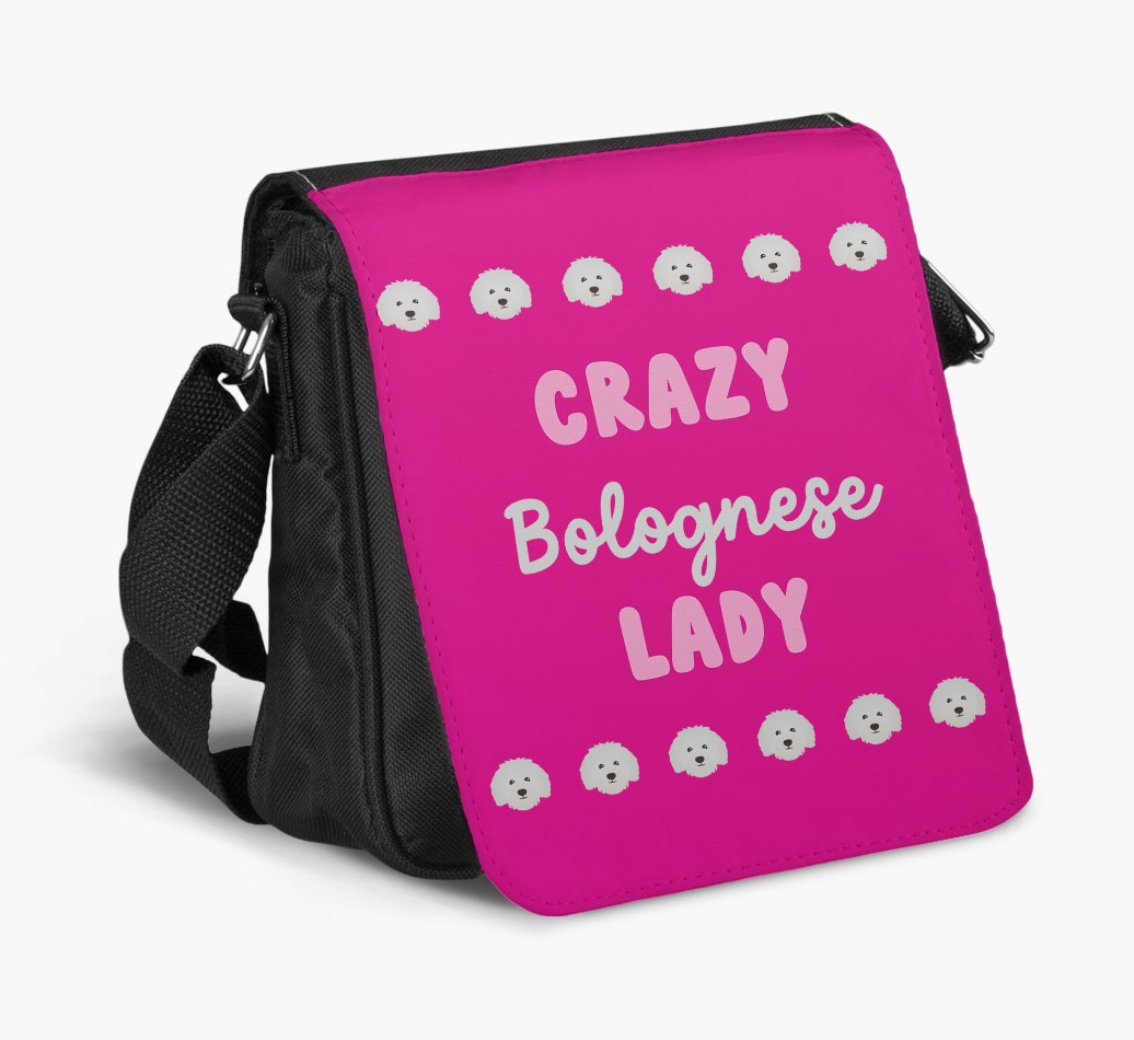 'Crazy Bolognese Lady' - Personalized Dog Walking Bag with Bolognese Icons