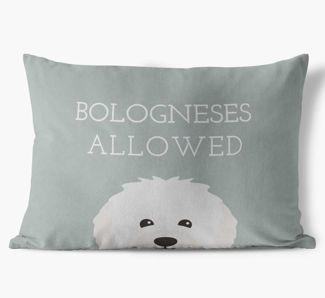 This exclusive, luxurious pillow is printed with the words ‘Bologneses Allowed’, which I’m sure Your Bolognese would definitely approve of.