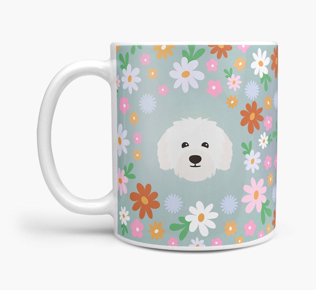 Featuring a colorful bunch of flowers, this mug is printed with the words 'woofly grandma' on one side of the mug and your Bolognese's cute icon on the other. Bloomin' lovely!