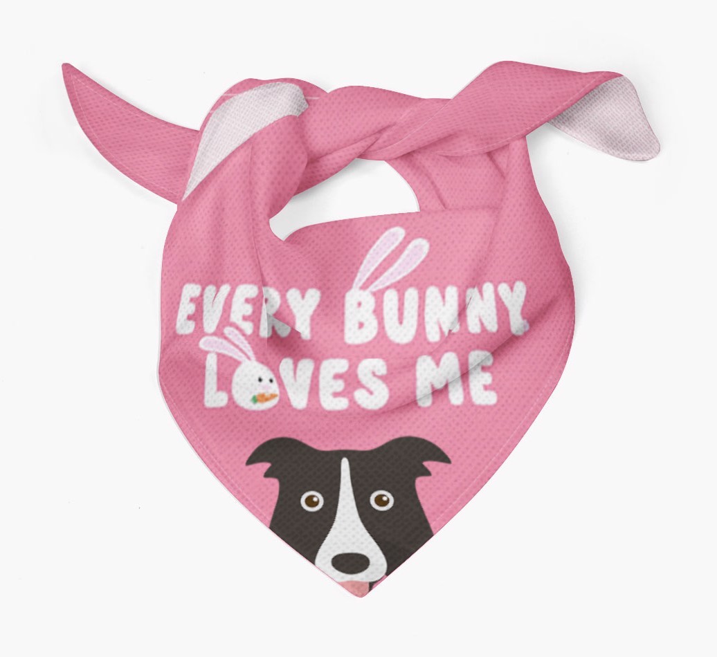 Tailored with the fabulous saying: 'Every Bunny Loves Me', this bandana is the perfect addition to your Border Collie's wardrobe! Available in four egg-ceptional colors and personalized with your Border Collie's icon, this is the perfect pawchase for Easter!