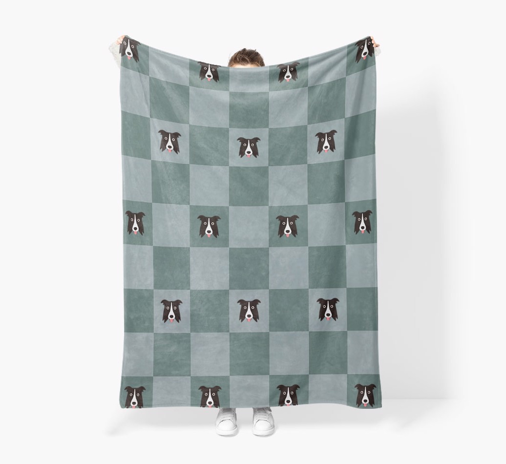 'Checkboard' - Personalized Border Collie Blanket: Premium Sherpa Fleece