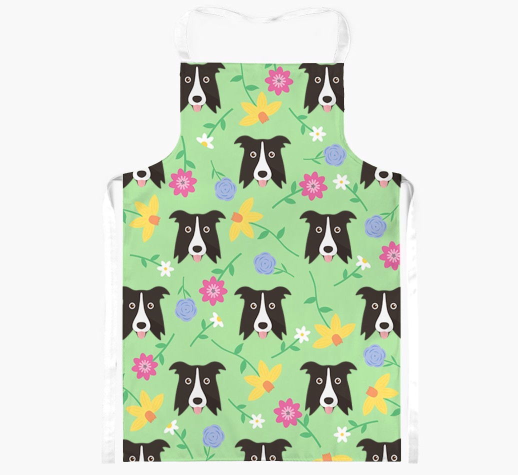 Featuring a gorgeous pattern of flowers and your dog's adorable face, this vibrant apron is bursting with canine charm and flowery fun - perfect for adding a splash of color to your kitchen.