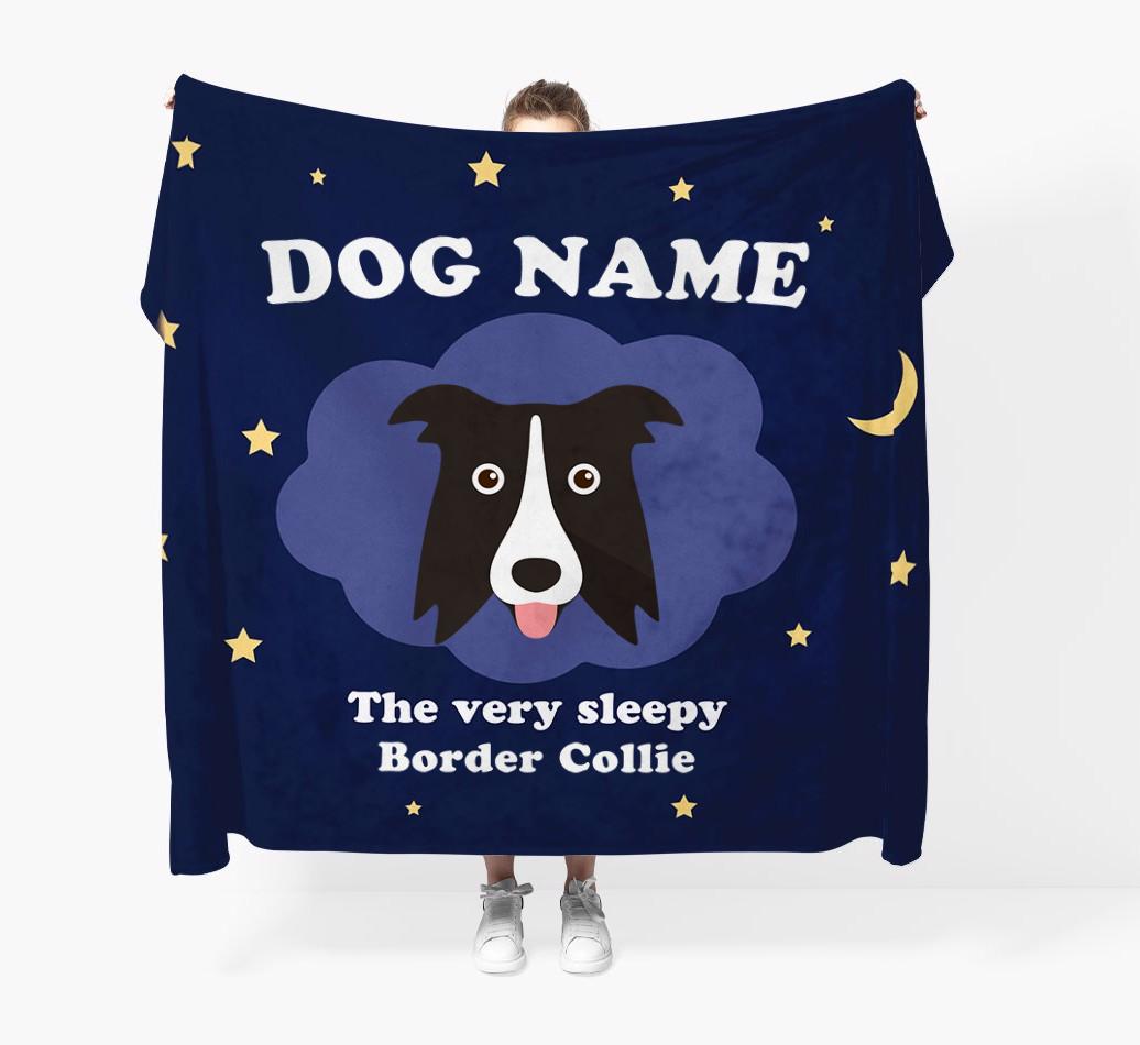 'The Very Sleepy...' - Personalized Border Collie Throw Blanket
