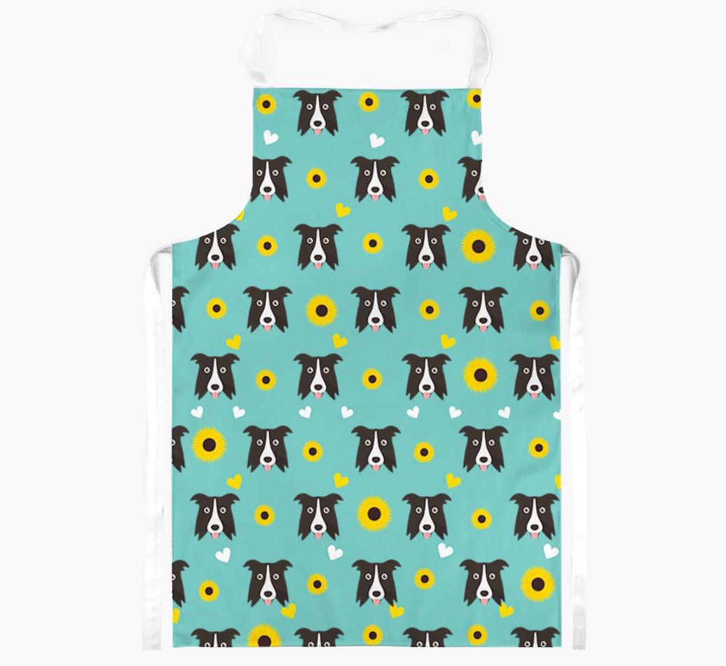 This apron has a delightful sunflower and heart pattern, and best of all - it's personalized with Border Collie's face too! This cute and colorful apron is sure to put a smile on every dog lover's face.