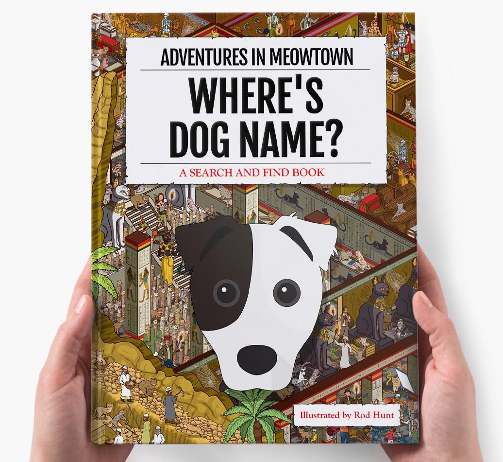 Get ready to unleash your inner detective with our popular Search & Find book, ‘Where’s (insert dog name)?’ It’s the personalized dog book everyone’s yapping about! With twelve beautifully illustrated locations to explore, we challenge you to find your adventurous {breedShortName} on each action-packed page. Can you spot all the canine cameos and funny parodies too?