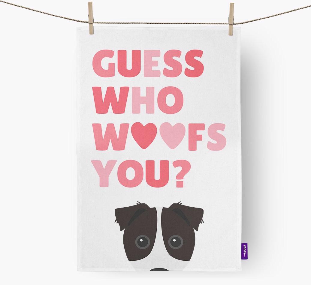 'Guess Who Woofs You?' - Personalized Border Jack Dish Towel
