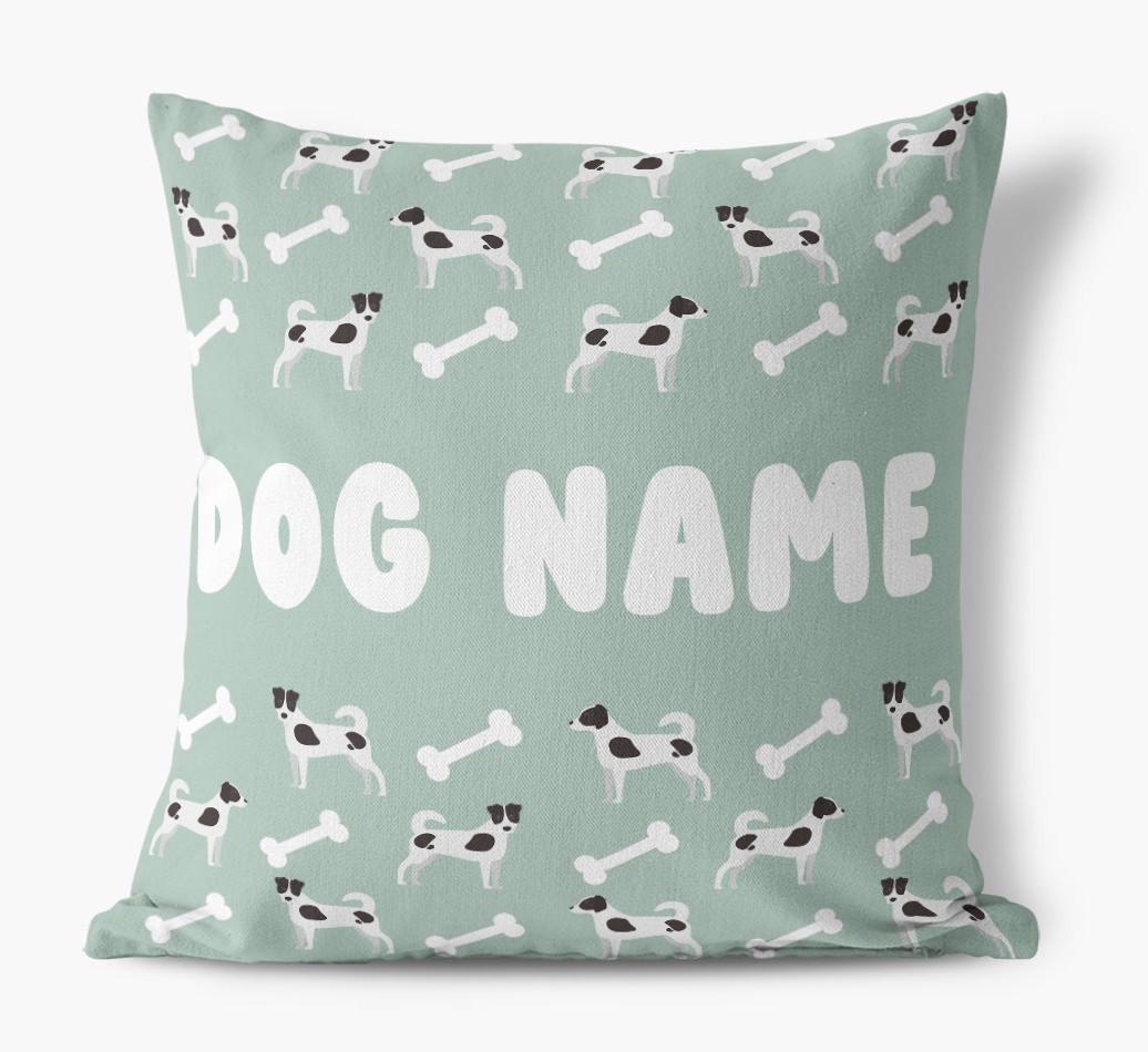 Personalized with Border Jack’s name against a background of Border Jack icons and bones, this gorgeous pillow is full of pawsonality.
