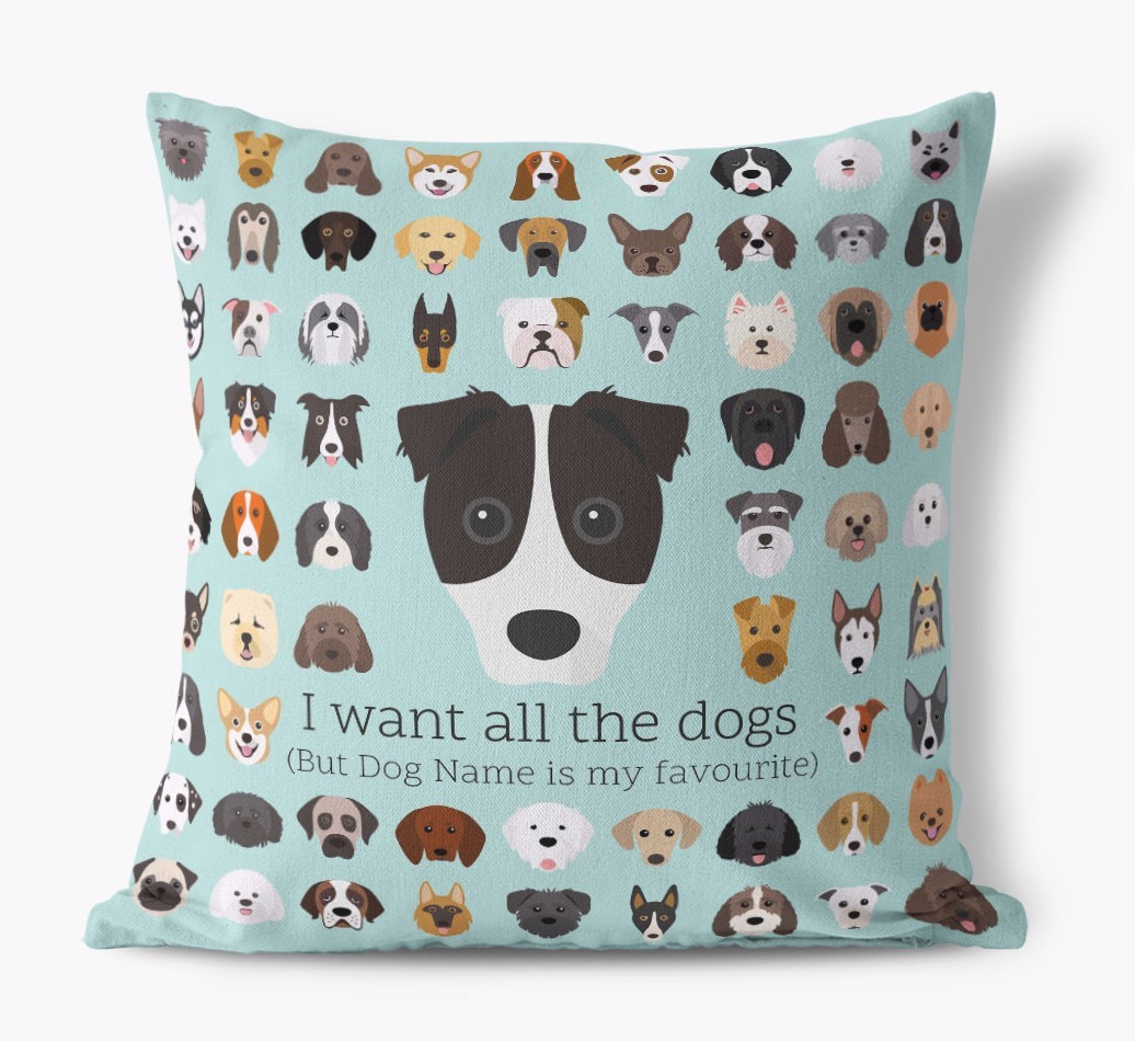 I Want All the Dogs: Personalized Border Jack Canvas Pillow