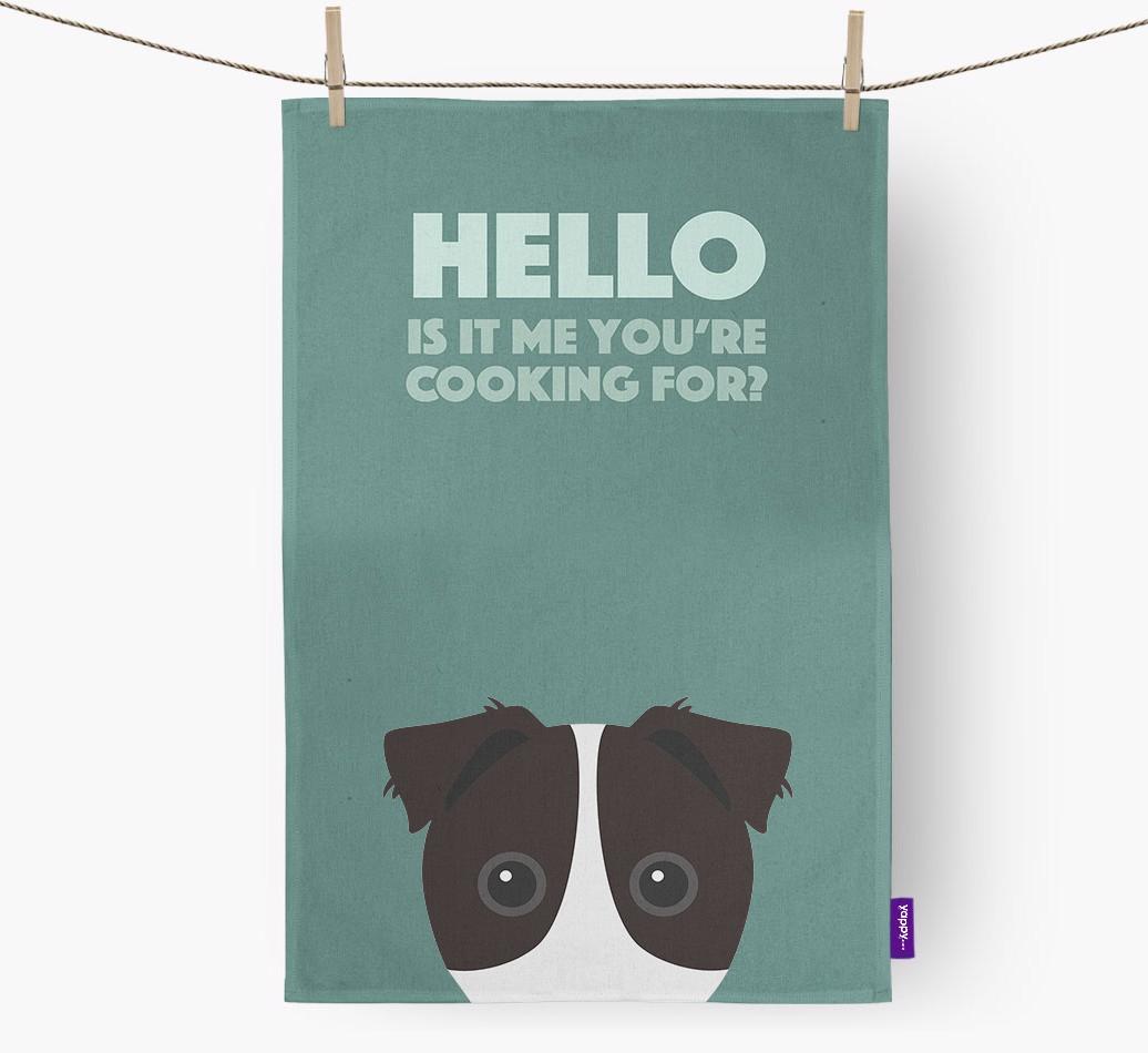 This gorgeous dish towel is sure to delight every Border Jack pawrent, especially as it stars their pup asking their favorite question, 'is it me you're cooking for?'