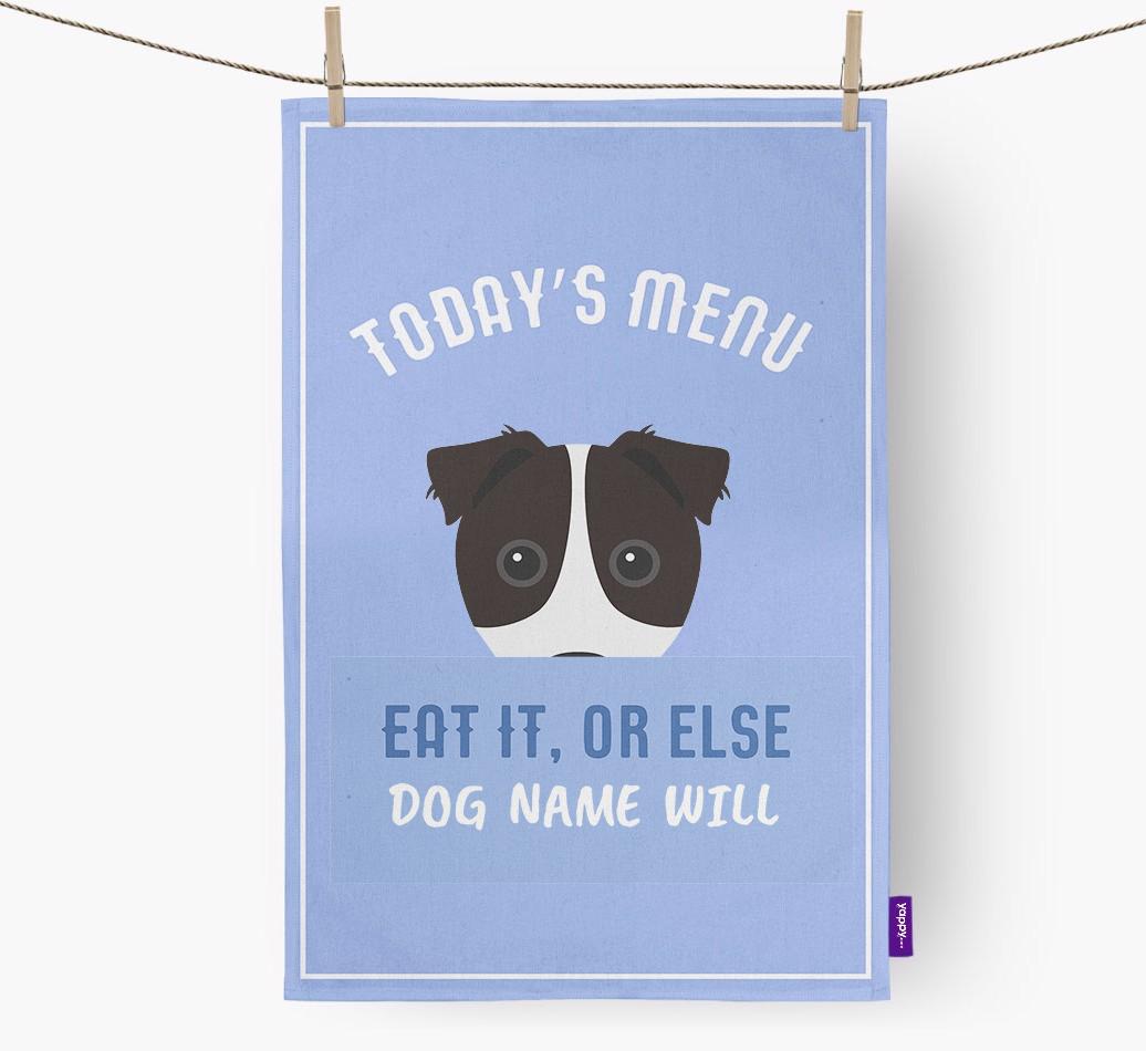 'Eat It, Or Else...' - Personalized Border Jack Dish Towel