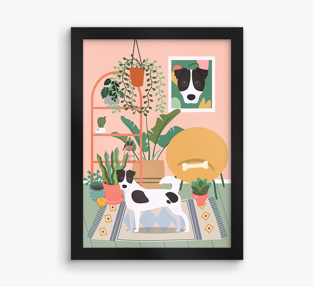 This contemporary piece of wall art pairs a chic living space with lovely pastel tones and a jungle of houseplants. Complete with the one that makes your house a home - Border Jack! - this print is a wonderful way to display your love for your pooch.