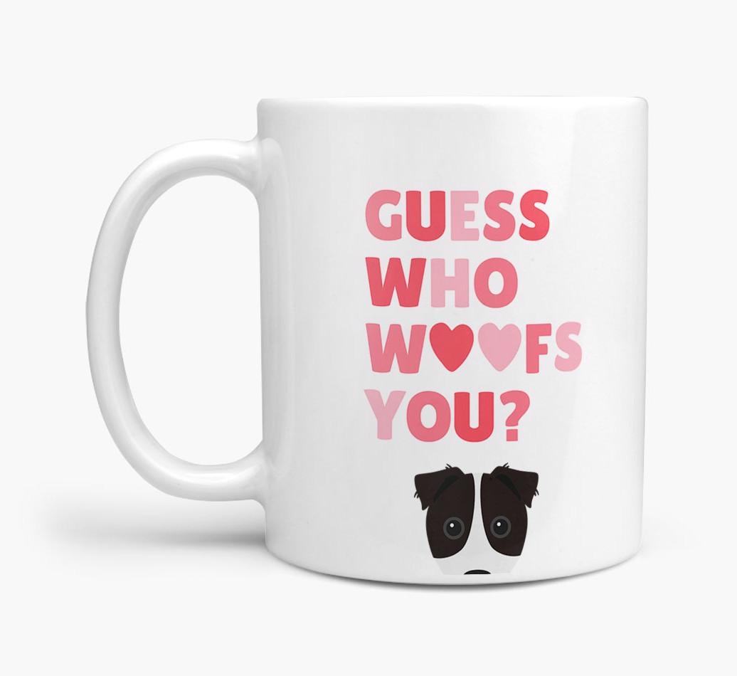 Personalized with Border Jack's cute face, this adorable mug is perfect for showing off the one who "woofs" you - how sweet!