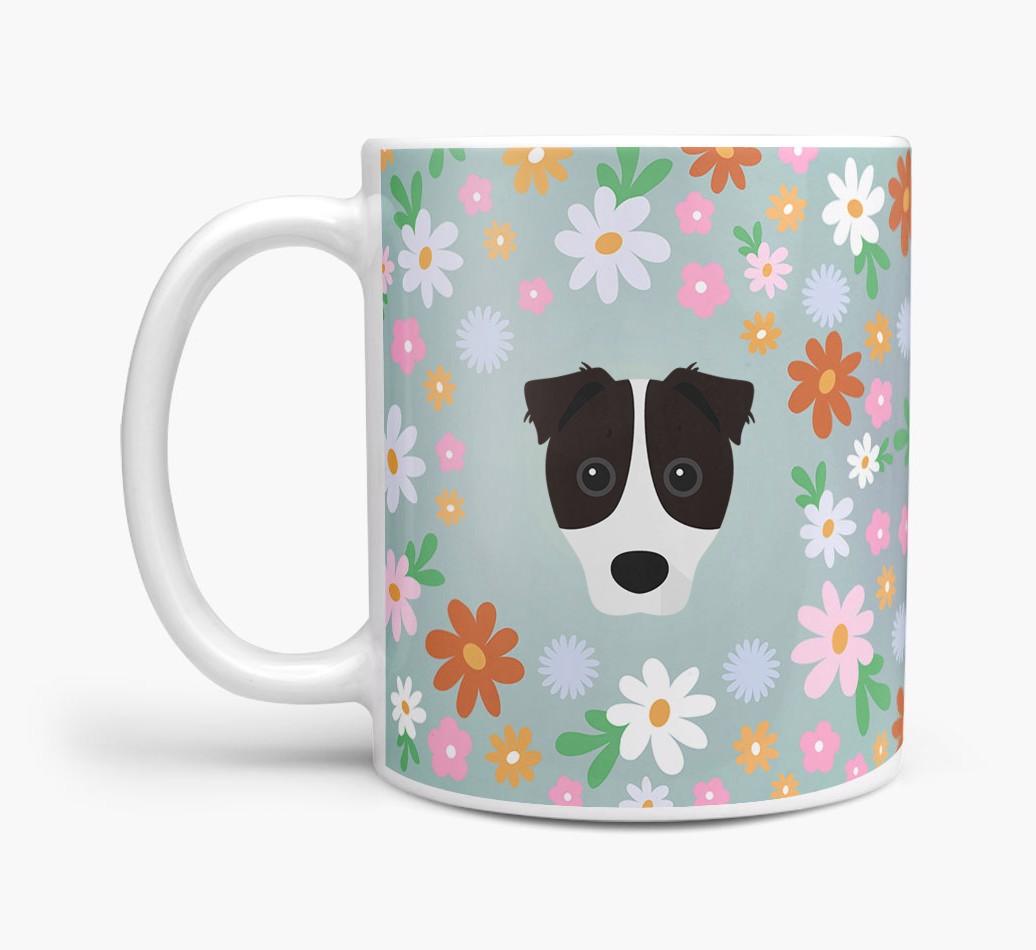 Featuring a colorful bunch of flowers, this mug is printed with the words 'woofly grandma' on one side of the mug and your Border Jack's cute icon on the other. Bloomin' lovely!
