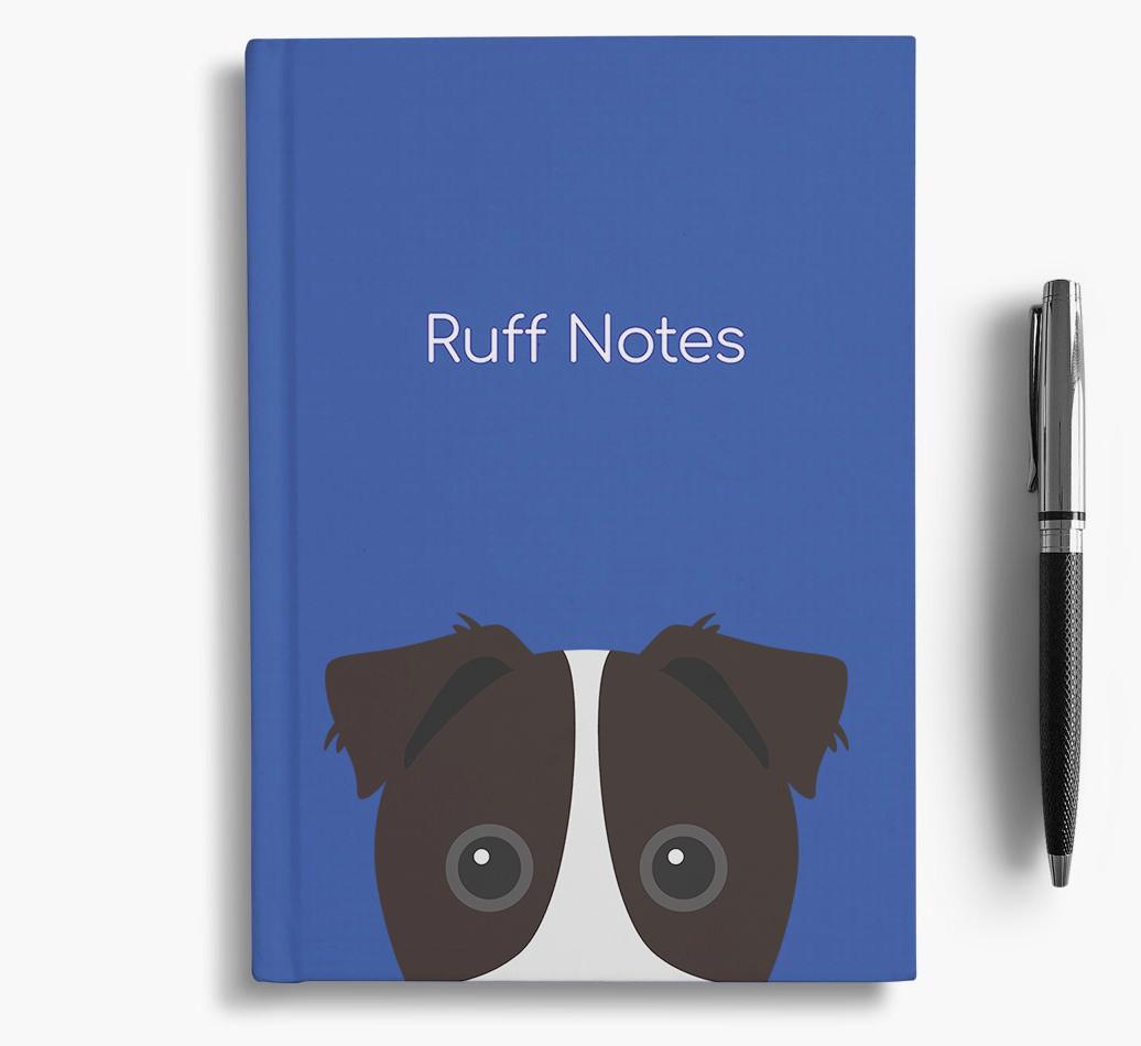 The front cover features our exclusive Border Jack peeking icon and is printed with the words, ‘Ruff Notes’, whilst the back is printed with the words ‘Live. Laugh. Woof.’.