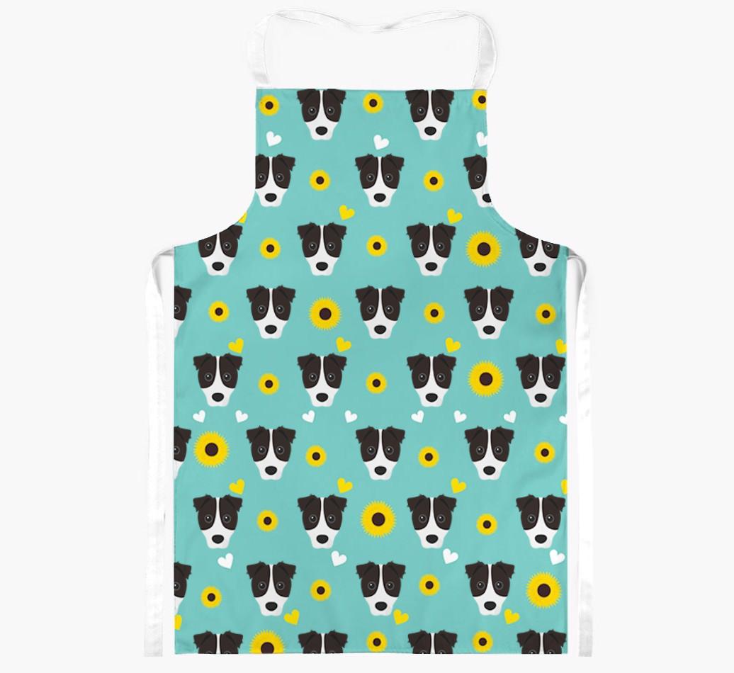 This apron has a delightful sunflower and heart pattern, and best of all - it's personalized with Border Jack's face too! This cute and colorful apron is sure to put a smile on every dog lover's face.