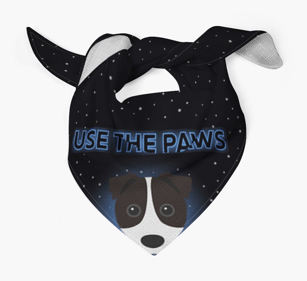Featuring a starry night sky and glowing text, this bandana is made extra special with the addition of your Border Jack's cute icon.