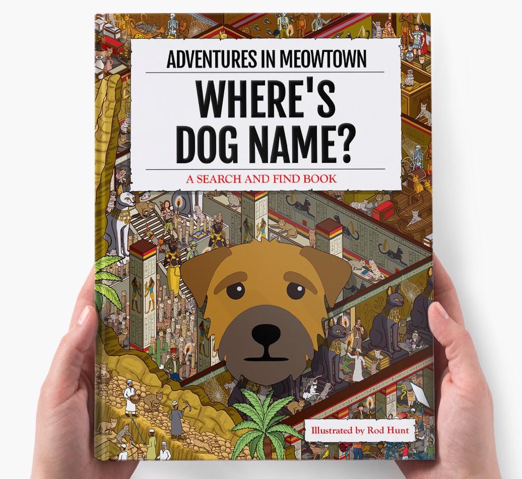 Get ready to unleash your inner detective with our popular Search & Find book, ‘Where’s (insert dog name)?’ It’s the personalized dog book everyone’s yapping about! With twelve beautifully illustrated locations to explore, we challenge you to find your adventurous {breedShortName} on each action-packed page. Can you spot all the canine cameos and funny parodies too?